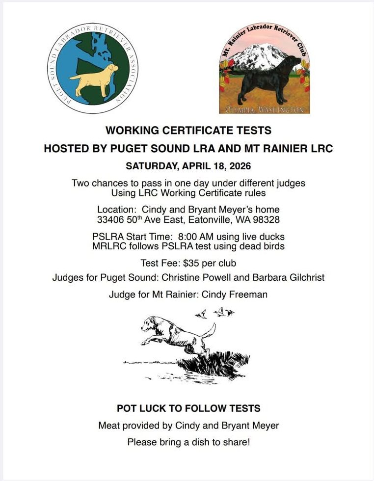 Test will adhere to the requirements outlined by the Labrador Retriever Club, Inc. as follows: